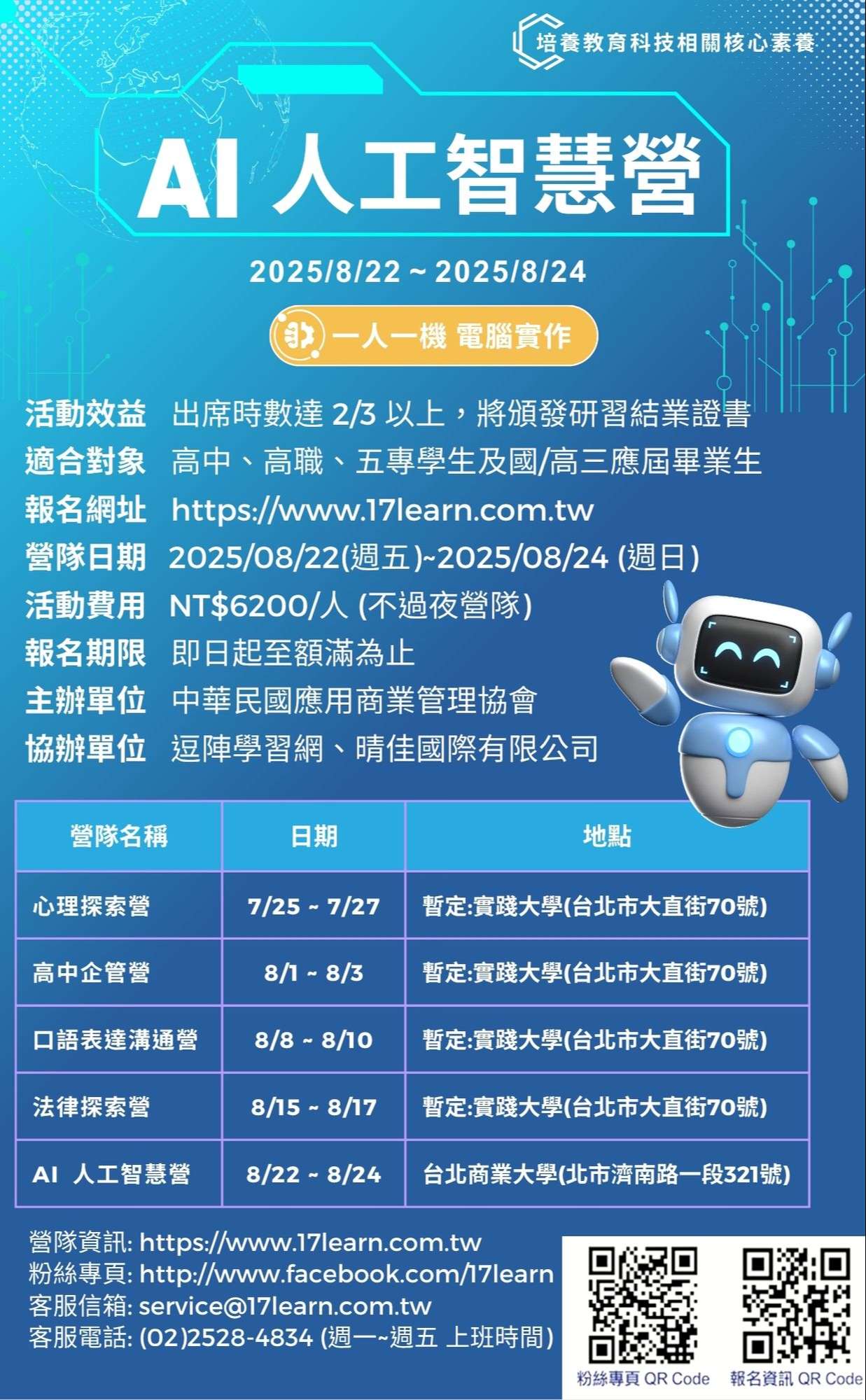 七、報名網址及營隊說明:https://www.17learn.com.tw