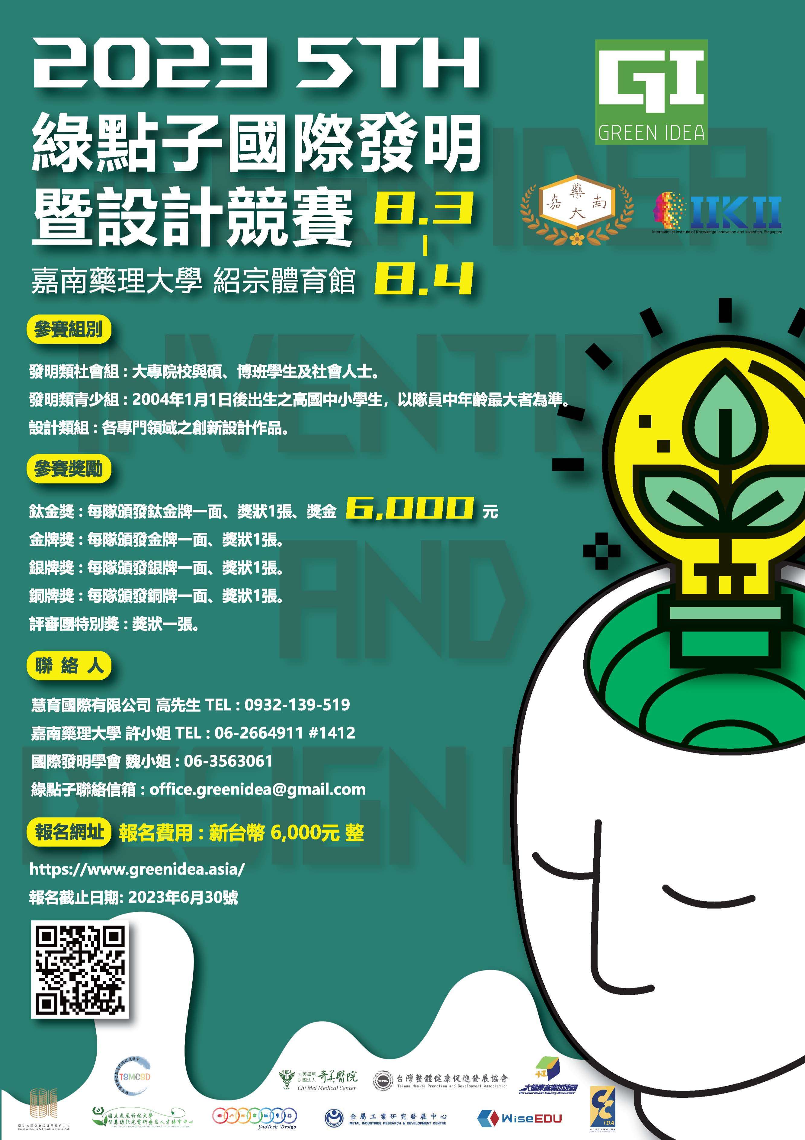 三、檢附「2023年第五屆綠點子國際發明暨設計競賽」電子海報;請公告至貴校官網,並鼓勵師生踴躍報名參加。