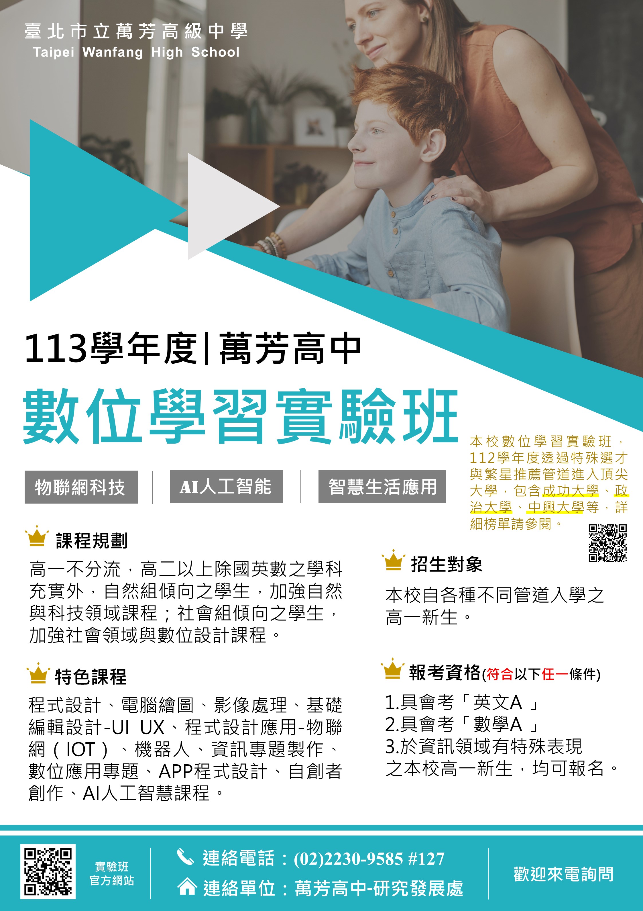 113 年 07 月 23 日(二) 16:00前,公告錄取名單於本校網站。經錄取者,逕行編入本校數位學習實驗班就讀。公告錄取榜單後,不得放棄入班,以免影響其他同學之權益。