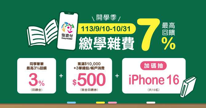 (二)活動內容:活動期間當月使用悠遊付每筆扣款享3%(限 量,每戶回饋上限100元)悠遊付回饋金,另累積消費新 臺幣(以下同)10,000元加3筆帳戶或錢包消費即回饋 500元指定通路現金回饋券,活動期間每戶最高回饋7%悠遊付回饋金(或回饋券)。