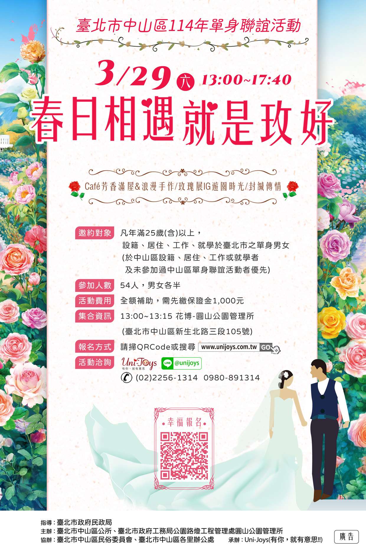 北市中山區公所『春日相遇 就是玫好』單身聯誼活動,將