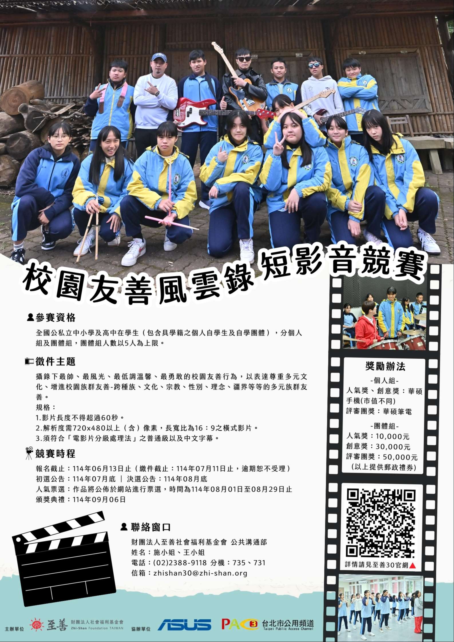 (三)徵件日期:截至114年7月11日止,請將參賽影片上傳 Youtube且設定不公開(知道連結者可觀看),並在活動 網站提供連結及封面縮圖(1280 x 720像素)1張,即完成繳件。