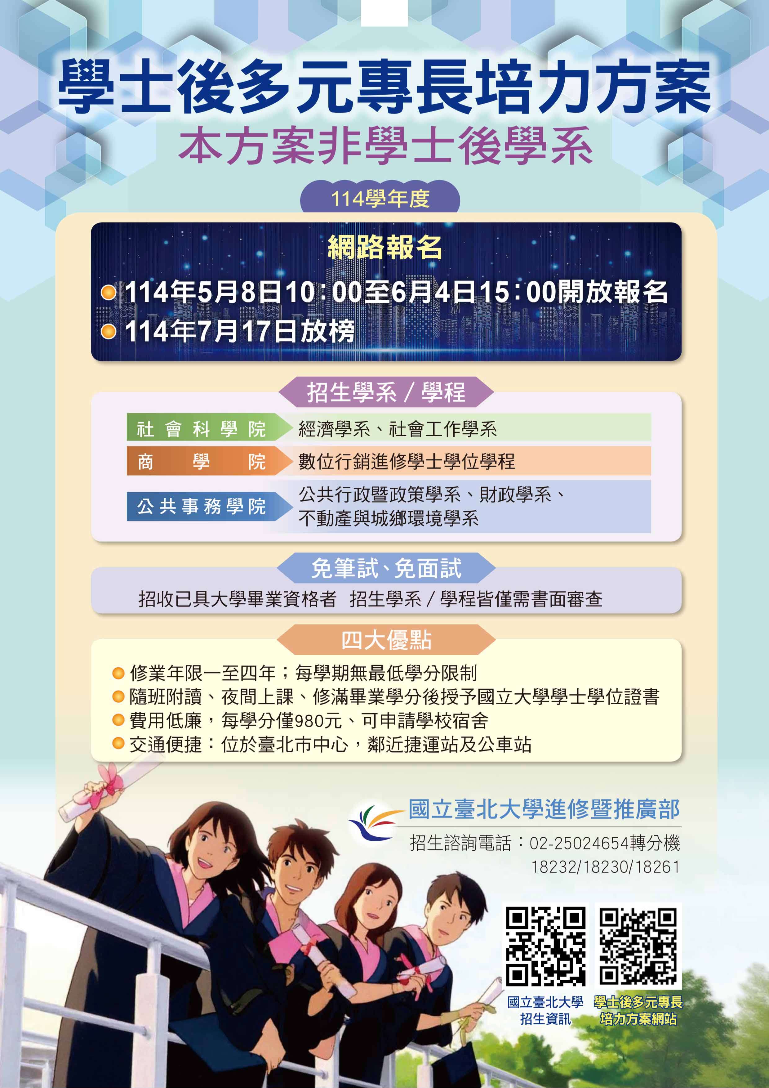 宣海報,相關招生資訊請至本校學士後多元專長培力方案