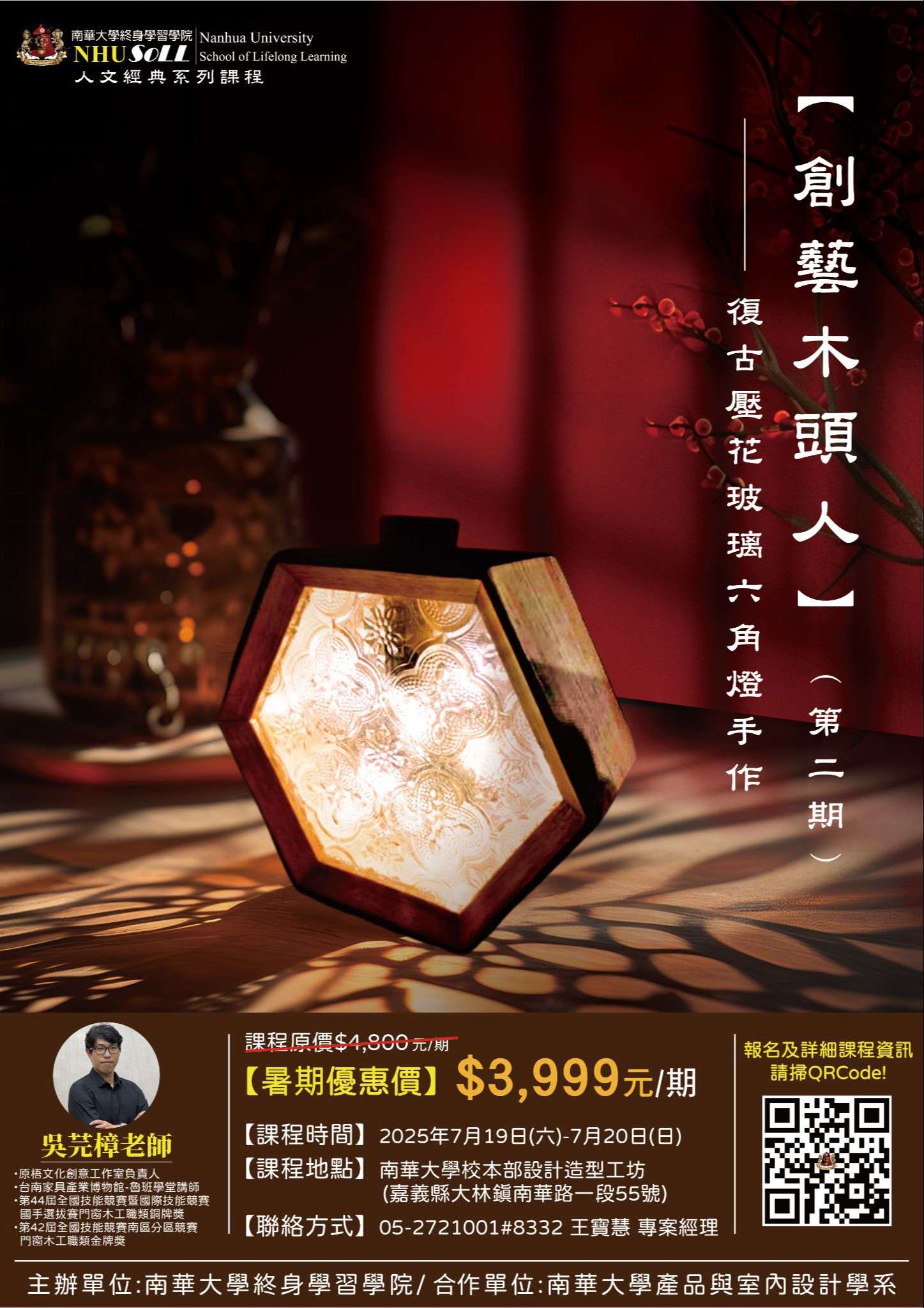 頭相約的體驗,兩天打造專屬復古壓花玻璃六角燈,限15