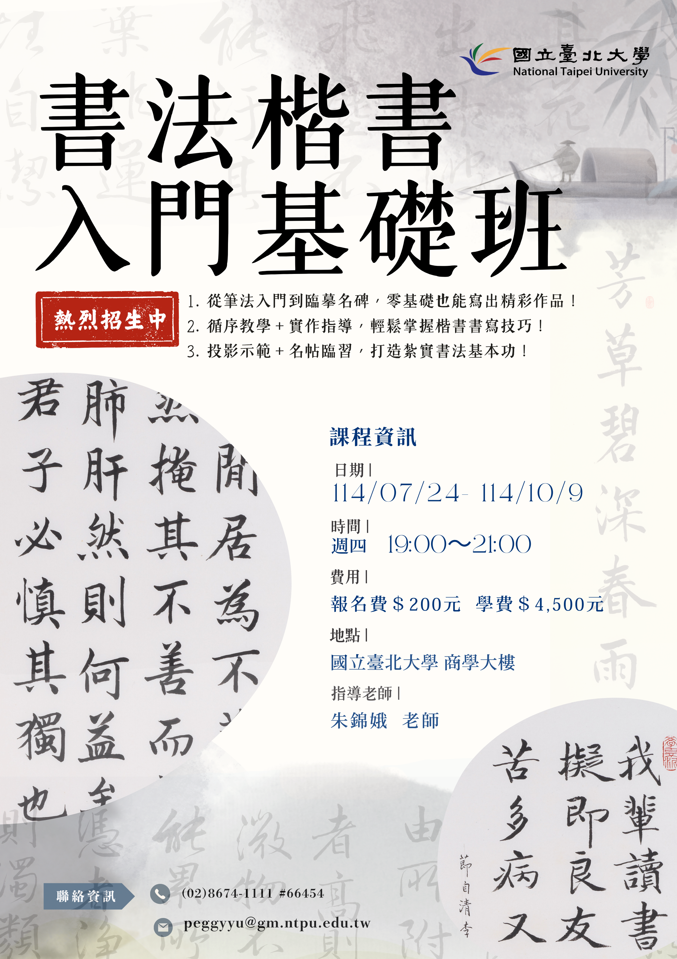 二、課程開課時間與詳細資訊請上網查詢:https://dce.ntpu.edu.tw/list.php?p=1666