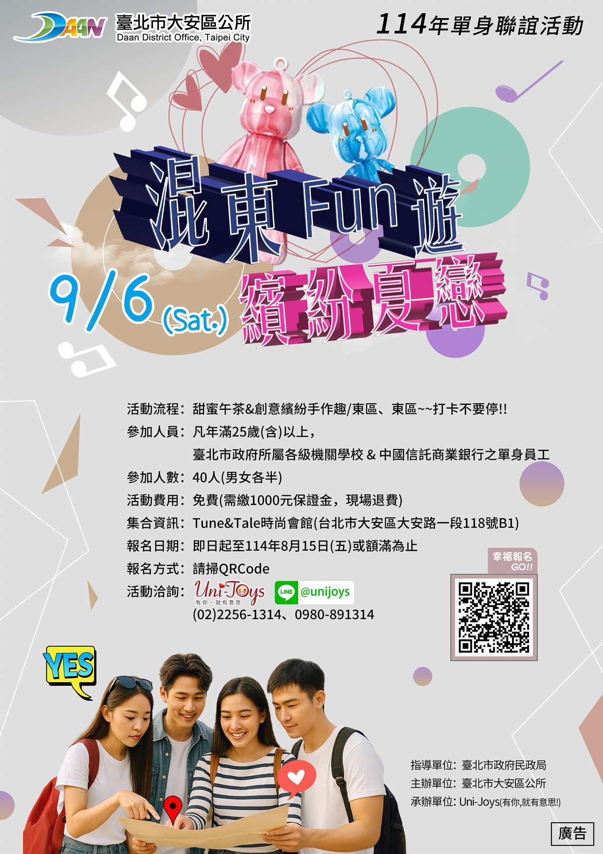 一、旨揭活動訂於114年9月6日(星期六)下午13時至17時30分於Tune&Tale時尚會館(臺北市大安區大安路1段118號地下1樓)及臺北東區商圈舉行,自即日起至114年8月15日(星
