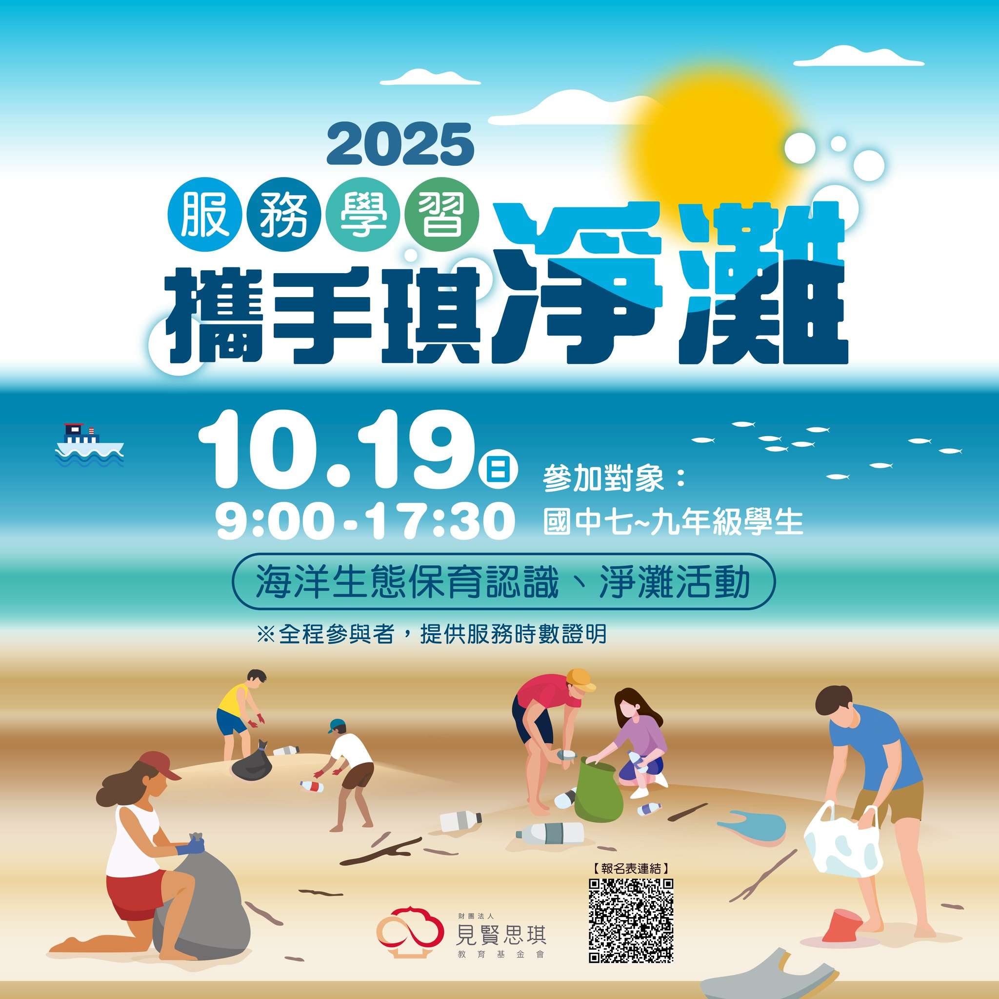 一、本會辦理「2025服務學習-攜手琪淨灘」服務學習活動,透過做中學提供社會參與機會,增進青少年對公共議題的關 心,豐富其學習視野,歡迎青少年踴躍參與。