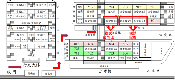 複試考場教室:仁愛樓1樓,仁愛分組教室(三)、(四)
