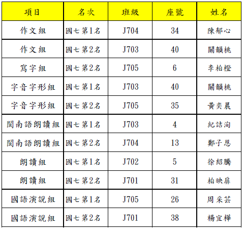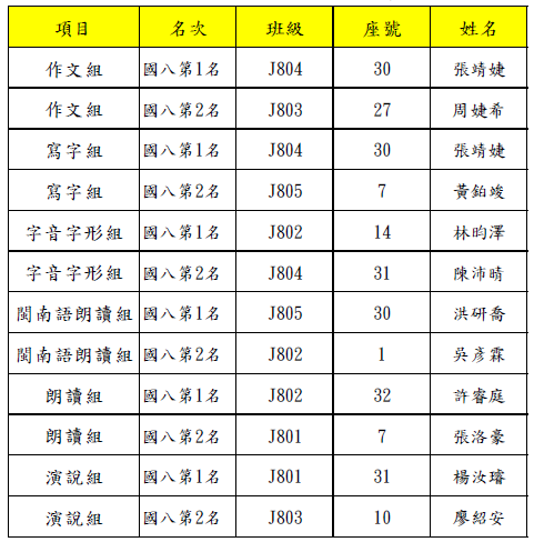 感謝各位同學的辛苦準備與指導老師的辛勤指導,並恭喜以下獲獎同學!!!