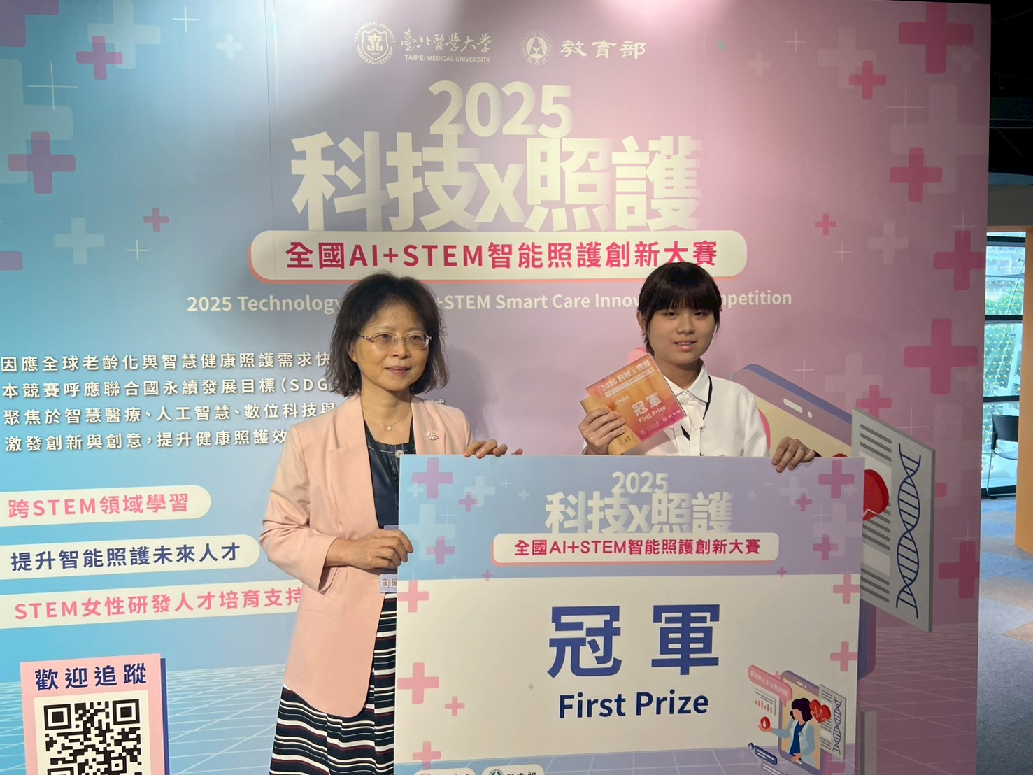 本校數位學習實驗班S201吳宥萱同學,參與2025 科技 x 照護:AI+STEM智能照護創新大賽,榮獲 冠 軍。