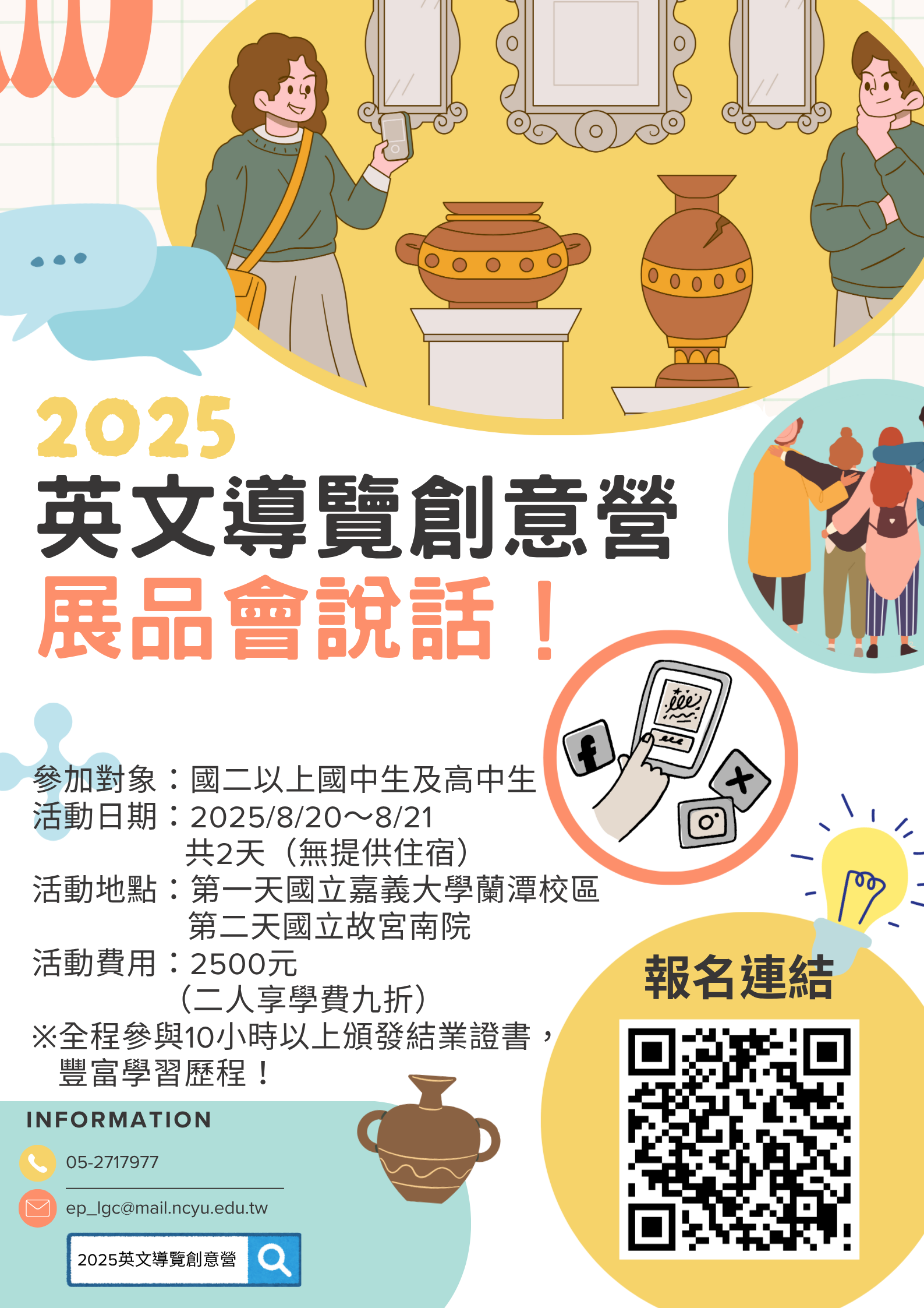 轉知國立嘉義大學語言中心辦理「2025英文導覽創意營:展品會說話!」計畫書