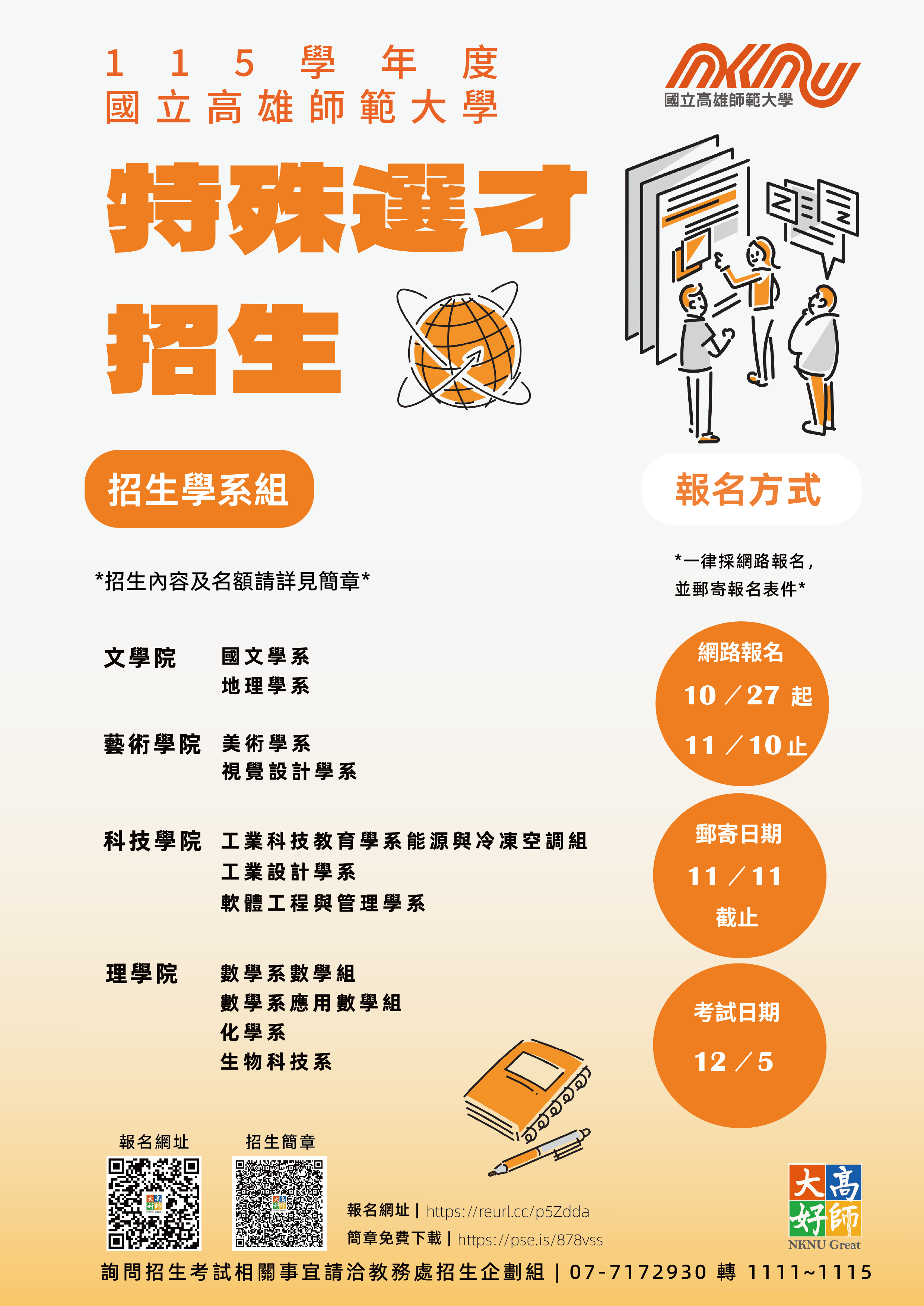 轉知國立高雄師範大學115學年度大學「特殊選才」招生簡章