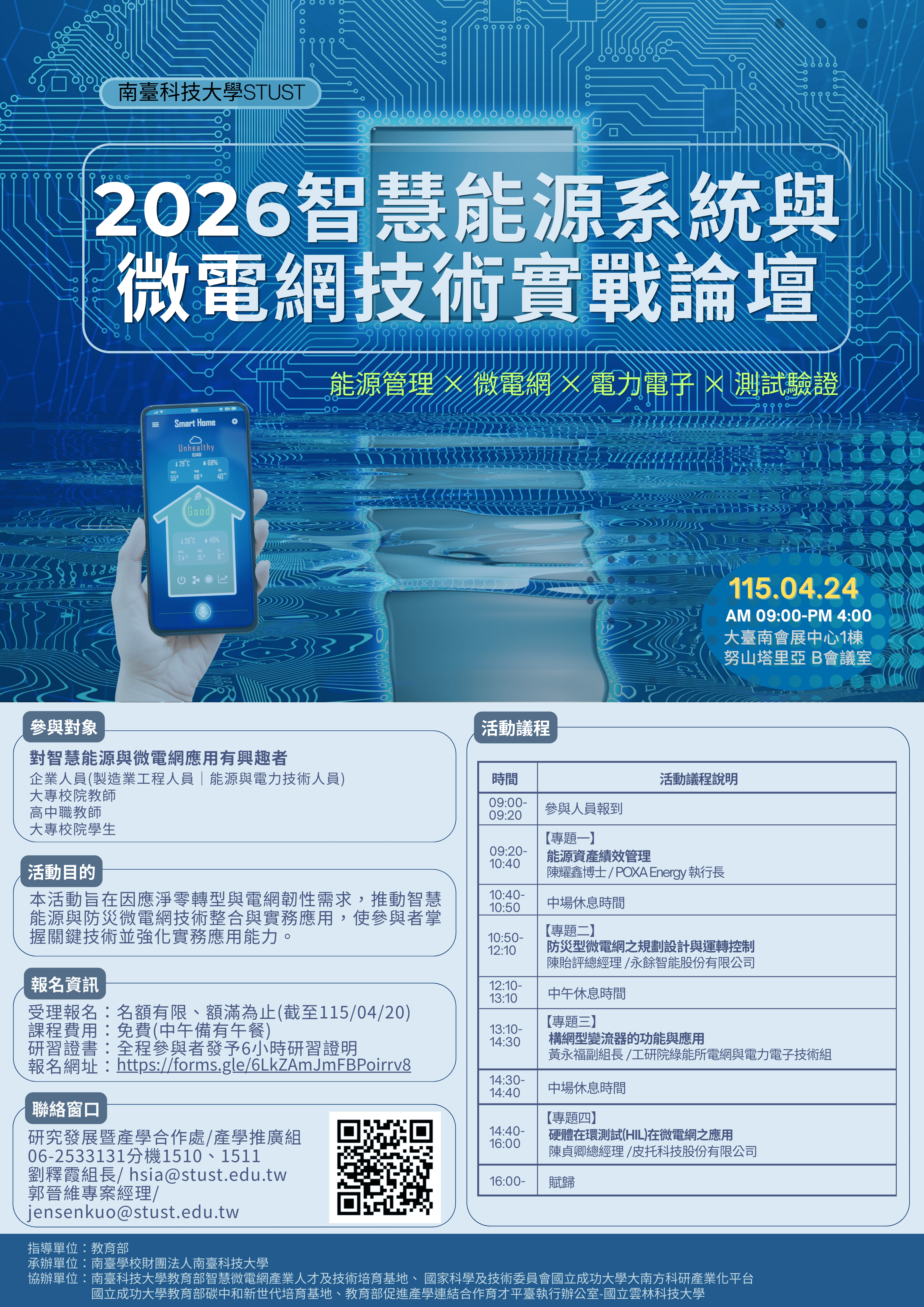 轉知南臺科技大學「智慧能源系統與微電網技術實戰論壇」