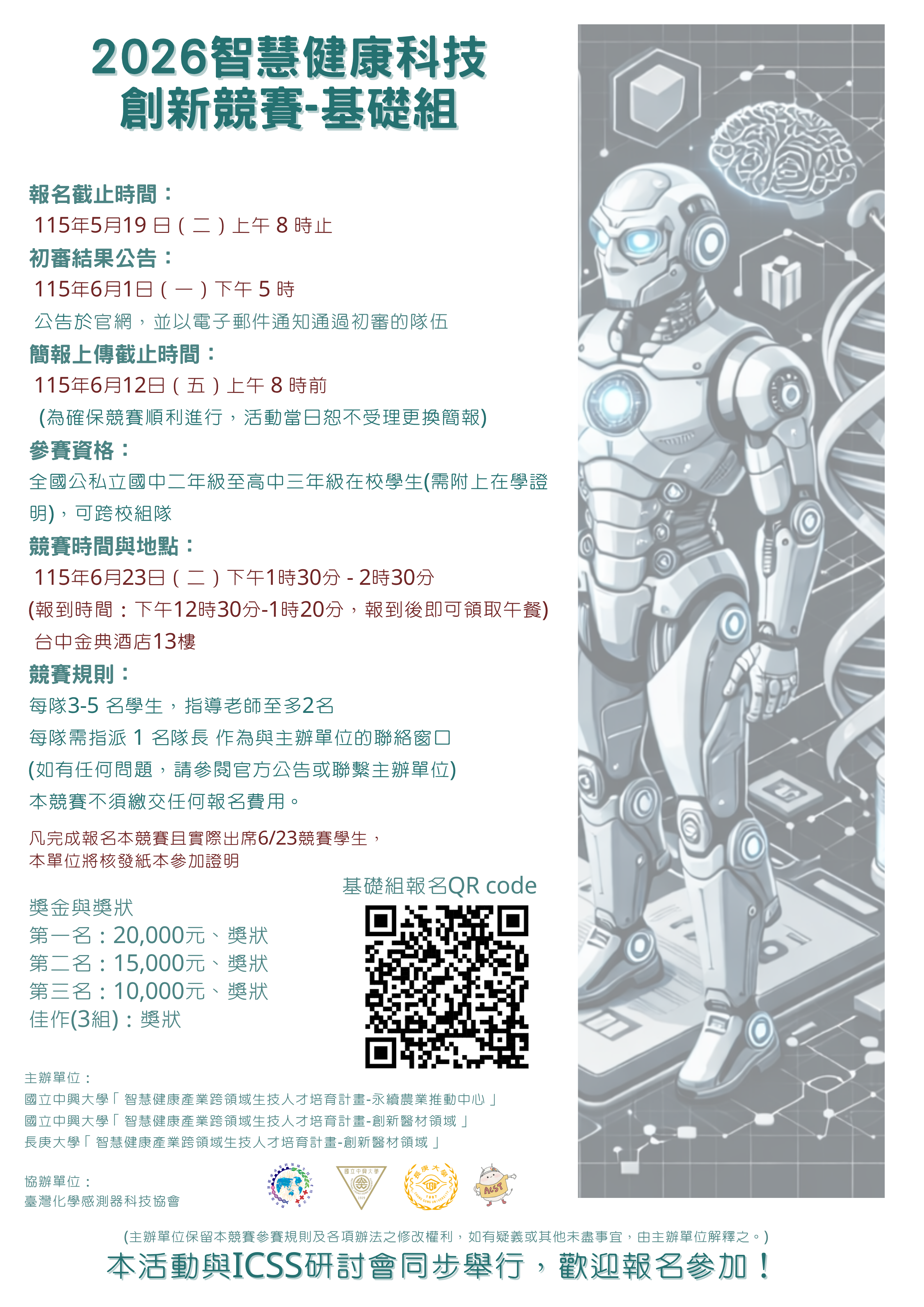 轉知國立中興大學辦理「智慧健康科技創新競賽-基礎組」