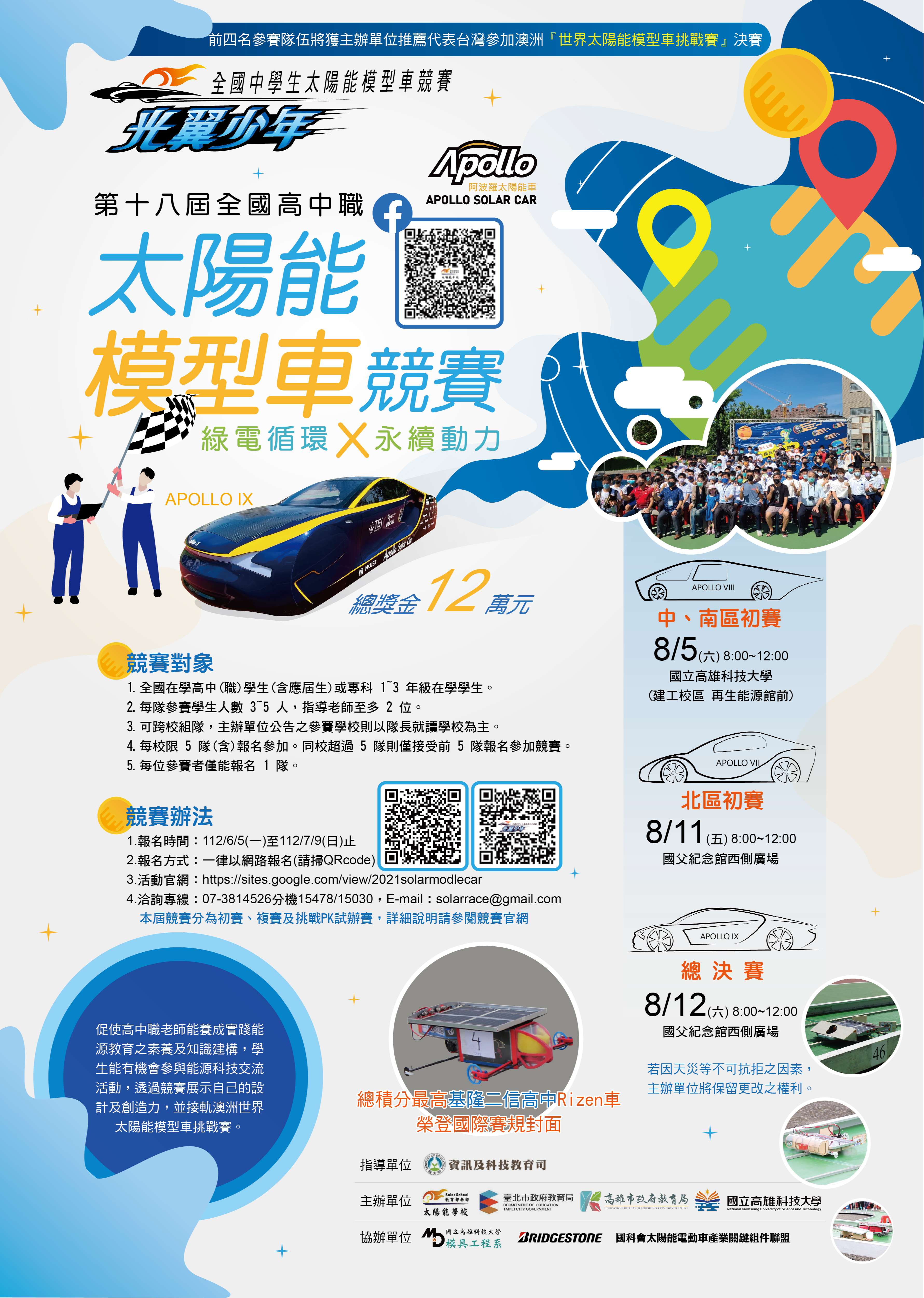 五、詳細競賽內容請參閱附件或至競賽網站查詢。(https://sites.google.com/view/2021solarmodlecar/)