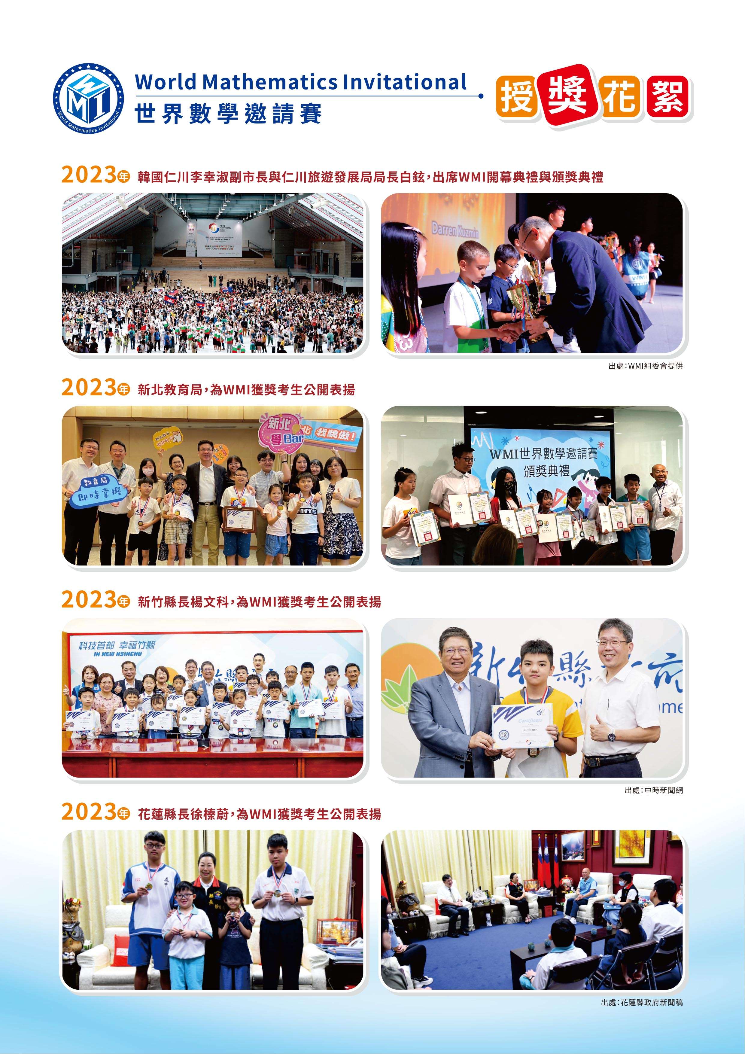 二、WMI世界數學邀請賽為第一個由台灣發起舉辦的國際性數學 競賽,集合世界各地致力於數學推廣組織機構,每年將在 不同國舉辦。