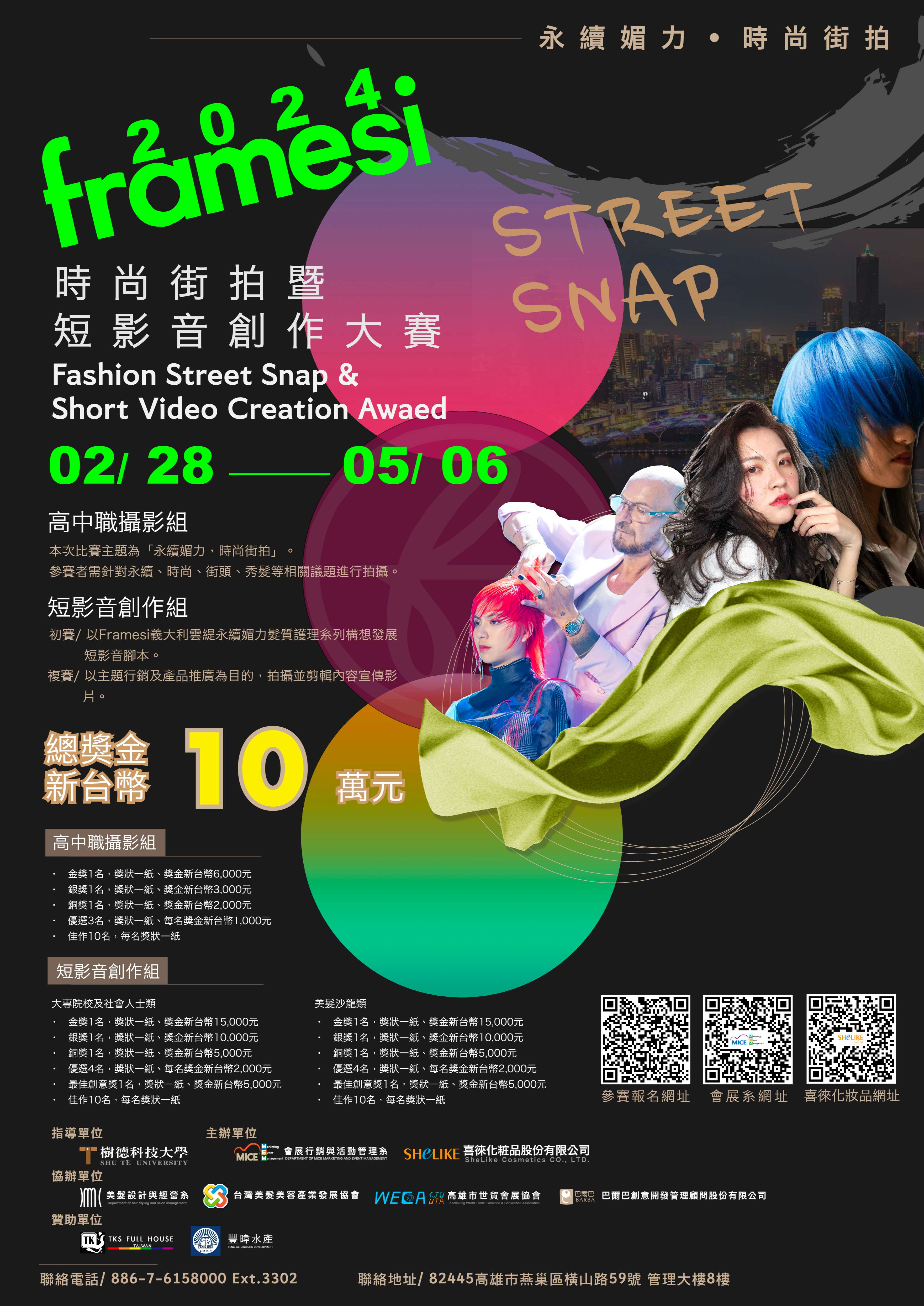一、2024 Framesi 時尚街拍暨短影音創作大賽報名截止日期: 2024年5月6日(一)止 。