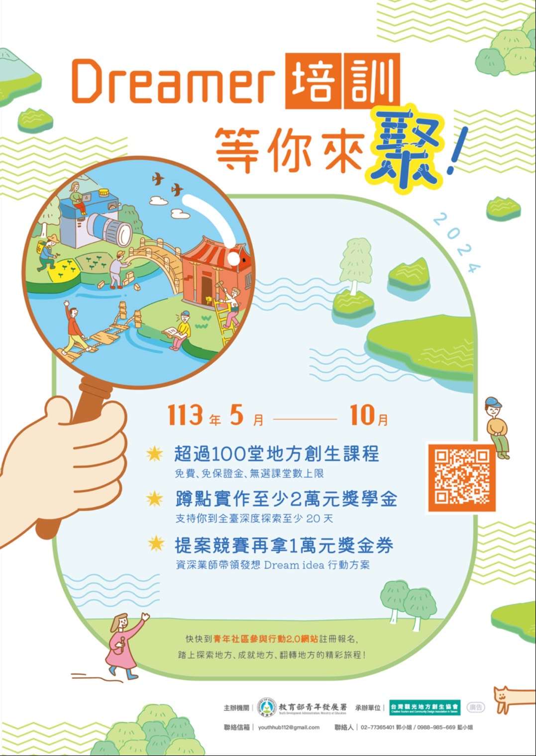 二、前揭在地課程提供15至35歲青年,不限堂數免費參加;另18至35歲青年可進行蹲點實作,並提供至少新臺幣2萬元之獎學金(至少20天),歡迎學生報名參與。