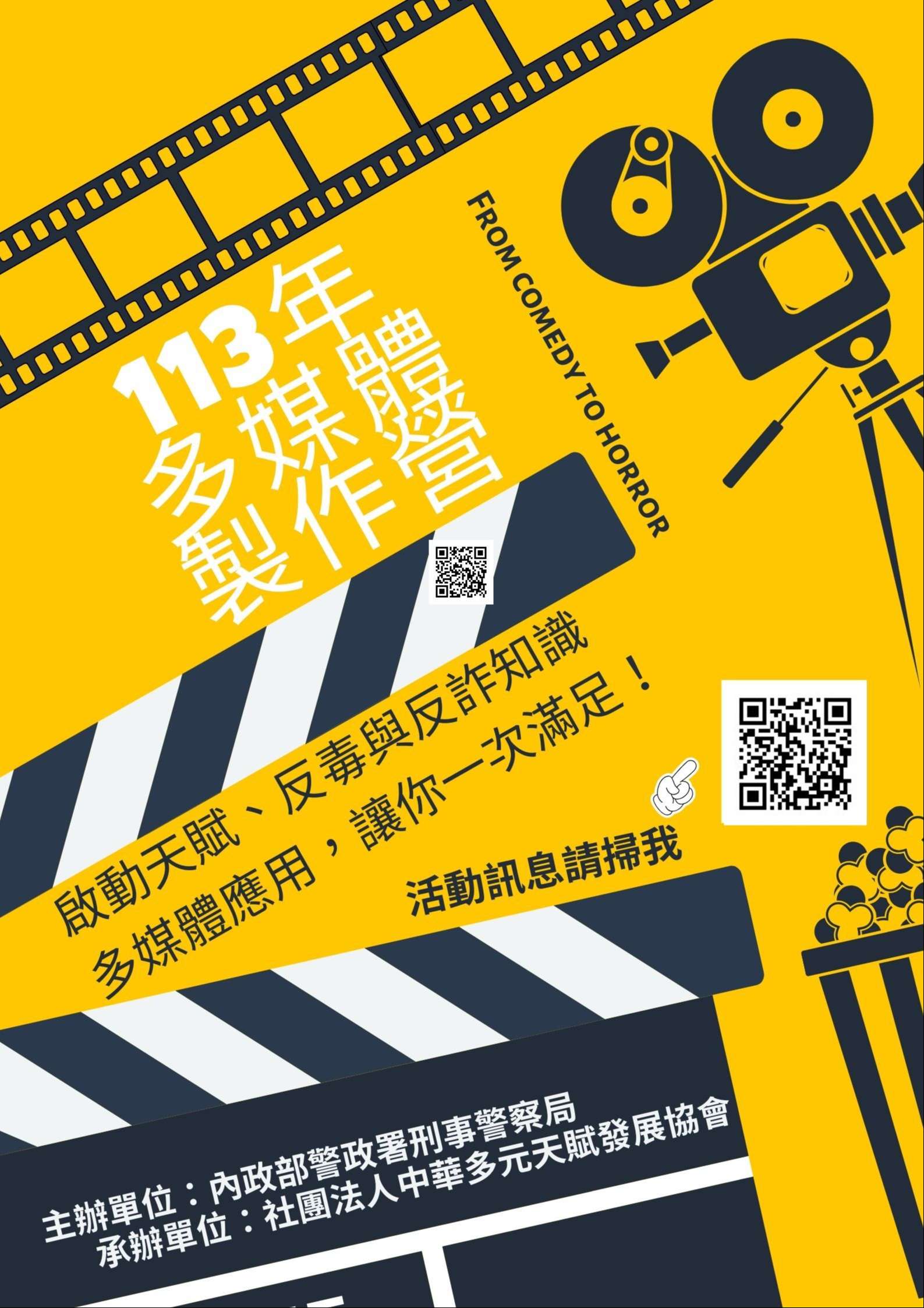 1、實體課程:依照報名填單順序錄取前25名及備取3名; 課堂中實作直播表演技巧、攝影運鏡、多媒體剪輯、網路社群經營互動,並透過專業講師講解反毒識詐資訊、進行問答互動及老師個別輔導。